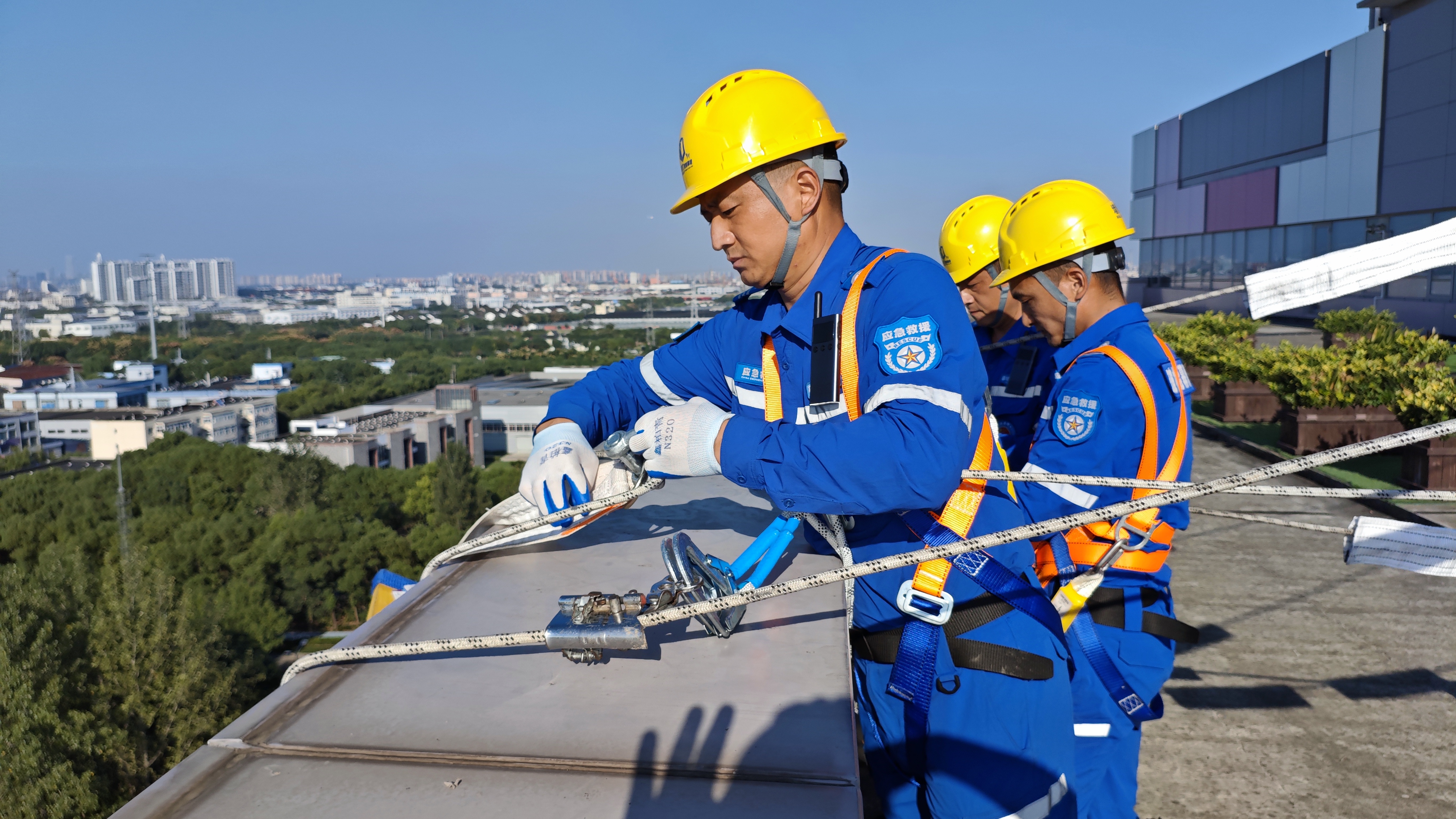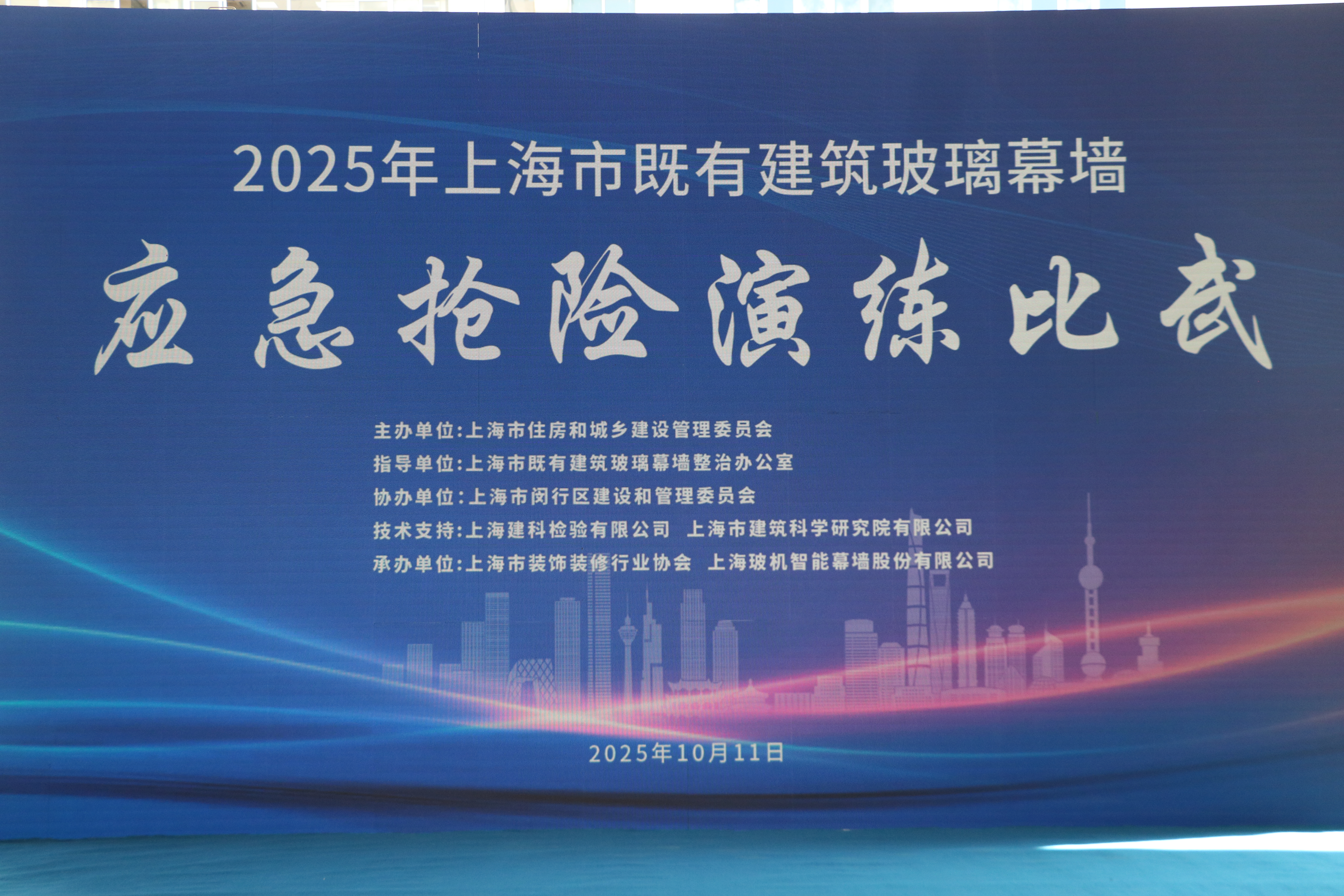 为切实提高玻璃幕墙高坠隐患应急处置能力,保障城市安全运维,10月11日,市住房城乡建设管理委会同闵行区建管委在玻机公司“开幕啦”城市更新园区举行“2025年上海市既有建筑玻璃幕墙应急抢险演练比武”活动。